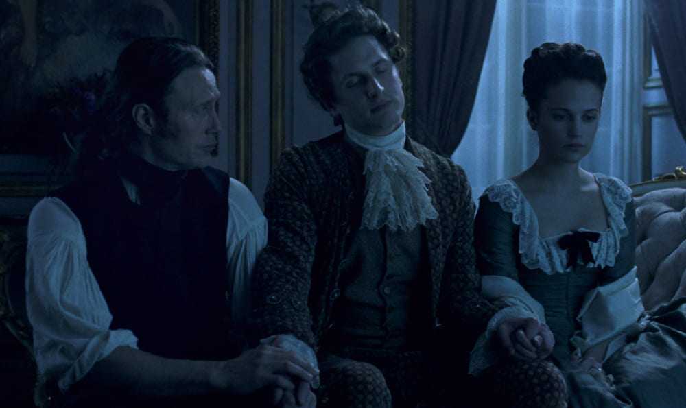 Так что не так в «Королевском романе»? – Если кто не смотрел или подзабыл, основой фабулы фильма является пылкая любовь между прогрессивной и просвещенной королевой из передовой Англии юной Каролиной-Матильдой (Алисия Викандер) (уже в первых сценах гнусно-реакционные датчане отбирают у королевы все книги, как не одобренные цензурой) и реформатором Струэнзе (Мадс Миккельсен уже не в первый раз играет ГлавГероя, которому отрубят голову, Колхас был первым), поклонником Руссо и Гуманизма с Просвещением.