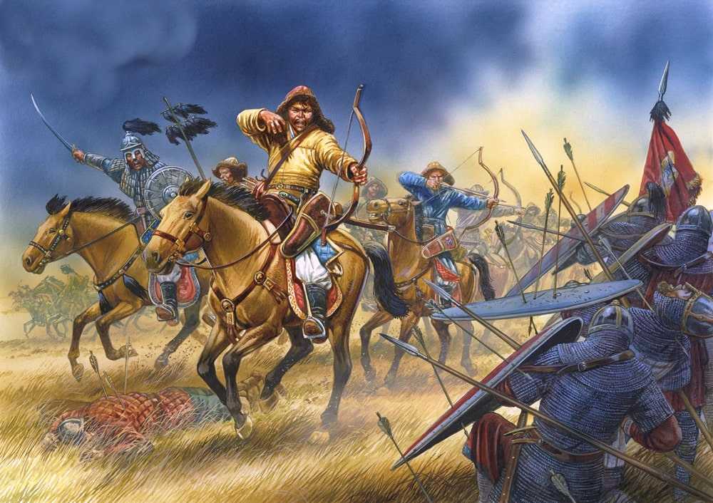 Может быть, под нападением и правлением монголов кто-то искусно замаскировал нечто другое, совершенно не имеющие отношения к бедным кочевым народам? Трудно себе представить, что они, привыкшие к жизни в достаточно теплой степи, спокойно себя чувствовали в лютые российские морозы, а ведь их не выдержали даже более стойкие и выносливые немцы, хотя были оснащены новейшей техникой и вооружением. Да и сам факт такого слаженного и четко работающего механизма управления, от кочевников ожидать довольно таки странно. Самое интересное, что совершенно дикие люди, порой, изображались на ранних картинах одетыми в доспехи и кольчуги, а при боевых действиях могли спокойно выкатить к вратам города таран. С представлением о татаро-монголах того времени, эти факты как-то совершенно не вяжутся.