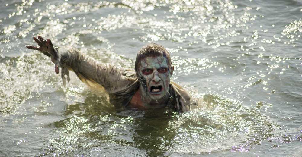 Фильм производства США «Приливная волна зомби» представляет весьма необычную картину зомби-нашествия. Рыбак застаёт восставших мертвецов во время прогулки в море на своей яхте – они поднимаются из воды и стремительно направляются к берегу. Мужчина возглавляет группу выживших и старается раскрыть источник нашествия, ведь мертвецы прибывают на берег вместе с волнами из океана. В картине есть и стремление мошенника спасти мир, и многочисленные кровавые бойни с заражёнными зомби.