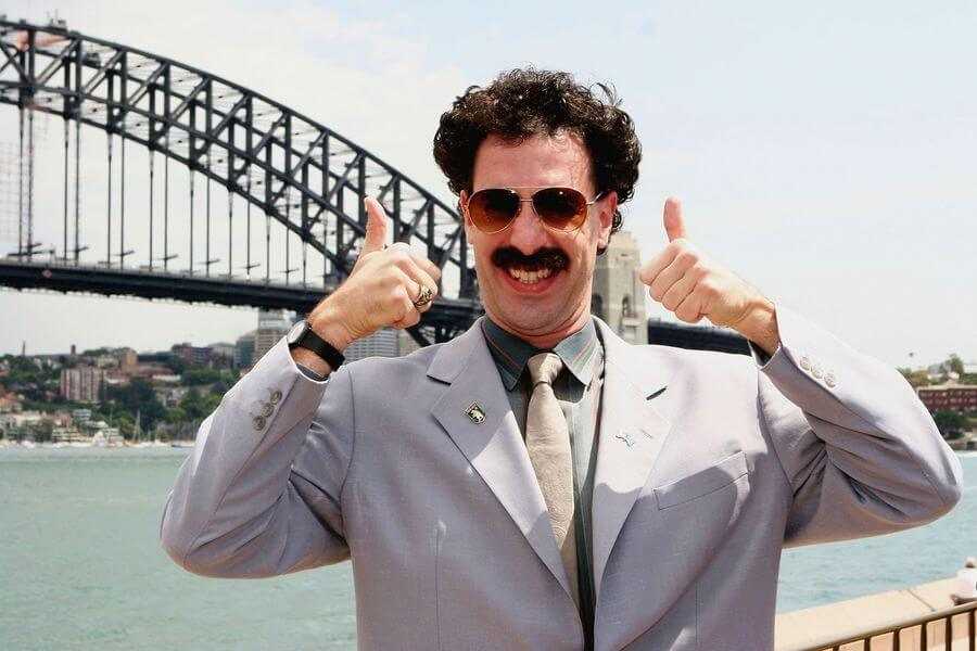 Главная «изюминка» фильма — большая часть сцен снята… без актеров! Саша Барон Коэн действительно изображал из себя Казахстанца, снимающего документалку — поэтому весь бред, который несут американцы «необразованному пигмею» идет от чистого сердца… Некоторые сцены из фильма даже удалили из-за угрозами судом от участников «документальных съемок».