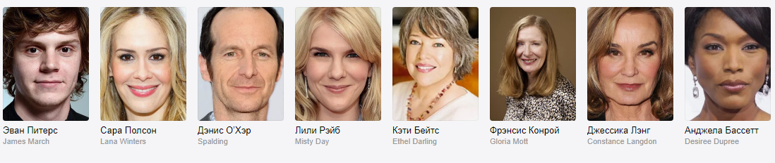 Многие актеры появлялись в нескольких сезонах, играя каждый раз разных персонажей. К примеру, Джессика Лэнг предстала перед зрителями в образе: