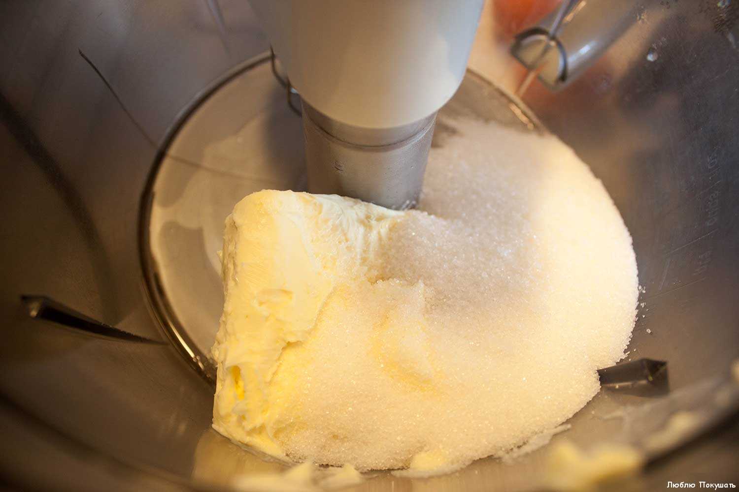 Миксером, в чаше комбайна, или вручную, в миске с венчиком, взбейте сливочное масло комнатной температуры, сахарный песок и лимонную цедру на средневысокой скорости.