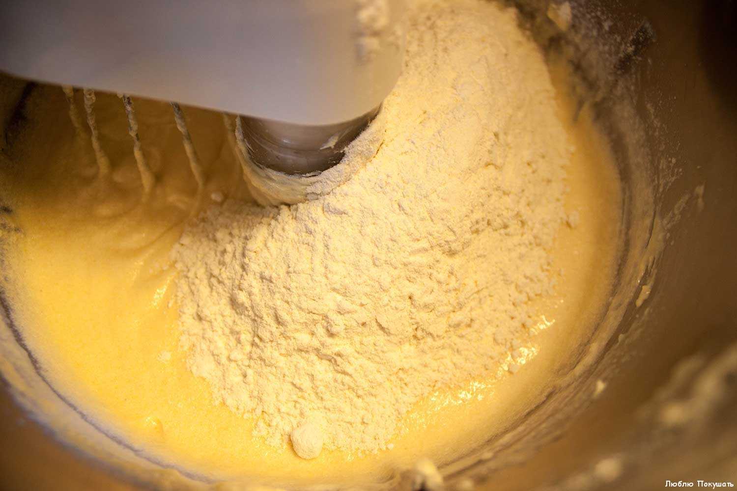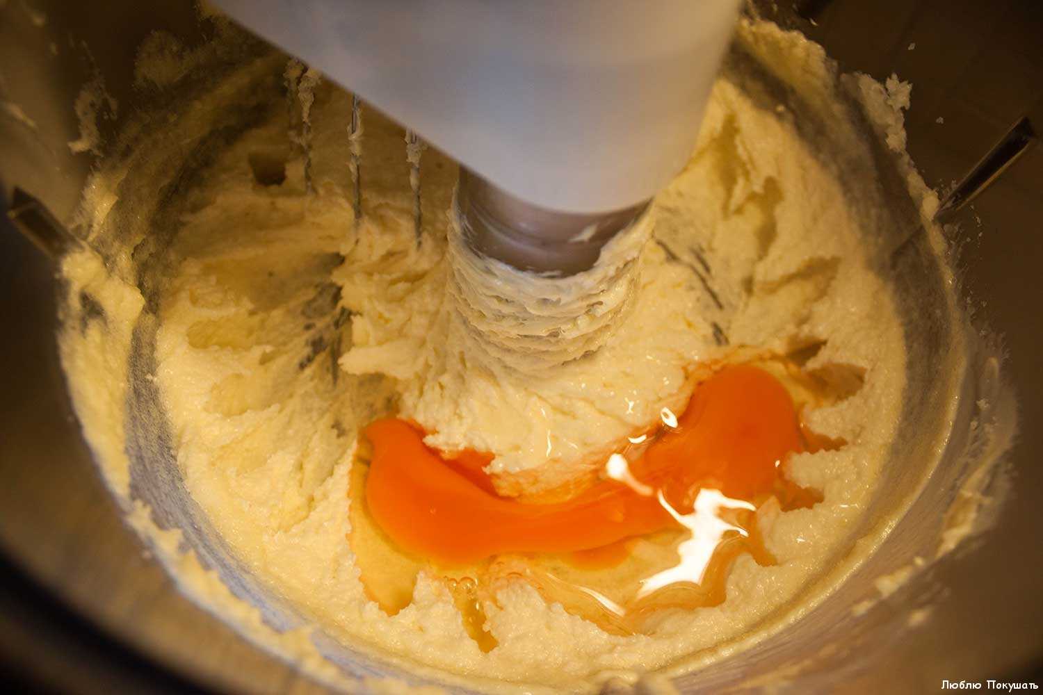 Затем уменьшите скорость миксера до средней и добавьте яйца комнатной температуры по одному за раз.