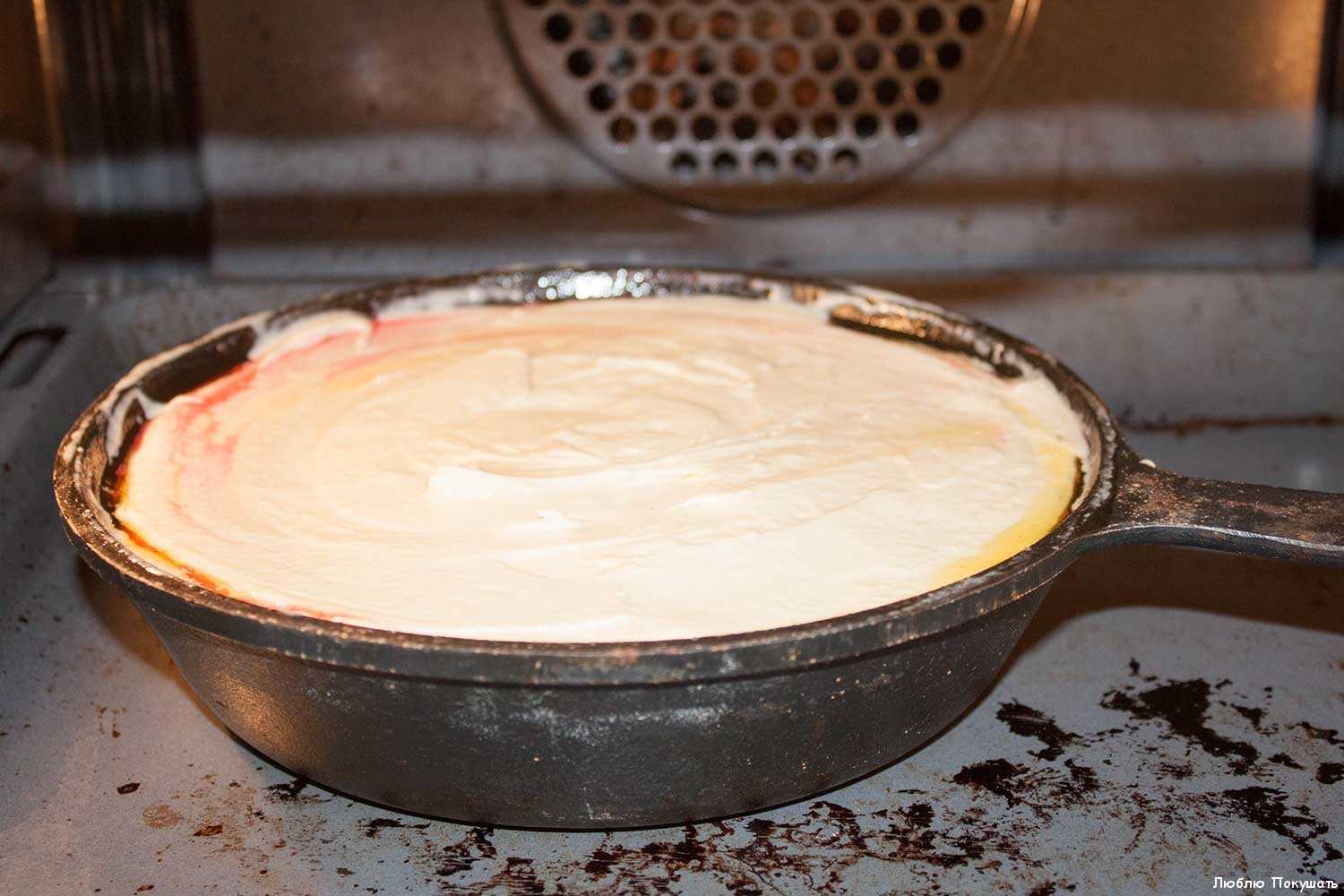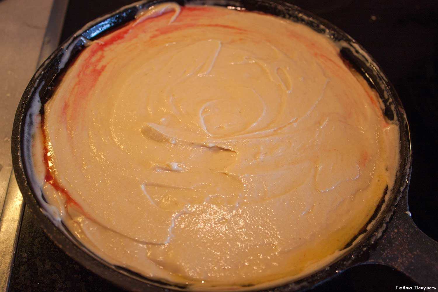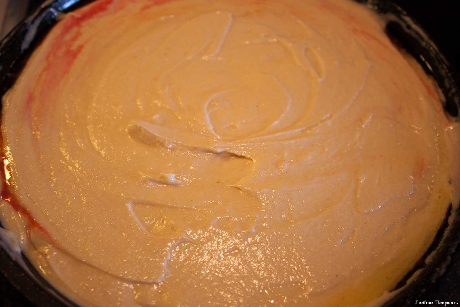 А затем растащите его лопаточкой или спатулой, чтобы распределить тесто равномерно.