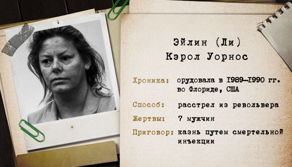 У следующей героини нашей пугающей статьи и вовсе не было шансов. Эйлин и ее старшего брата воспитывали бабушка и дедушка по линии матери, оба алкоголики. Мать, которая родила первого ребенка в 14 лет, бросила их маленькими и никогда не видела. Отца Эйлин не знала, тот страдал шизофренией и повесился в тюрьме.