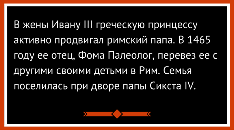 - Последнее предложение было также выдвинуто папой Павлом в 1469 году: на этот раз женихом пророчили русского князя Ивана III, который в 1467 году потерял жену.