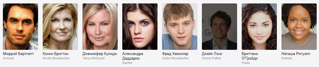 Роль Армонда исполнил Мюррей Бартлетт, которого зритель может вспомнить по участию в фильмах «Железный кулак» и «В поиске». Образ журналистки Рейчел Пэттон воплотила Александра Даддарио, ранее появлявшаяся в таких кинолентах, как «Перси Джексон и похититель молний», «Почему женщины убивают» и «Спасатели Малибу». Роль агента по недвижимости и супруга Рейчел, Шейна Пэттона, сыграл Джейк Лэси. Его игру аудитория видела в фильмах «Офис», «В активном поиске» и «Опасная игра Слоун».