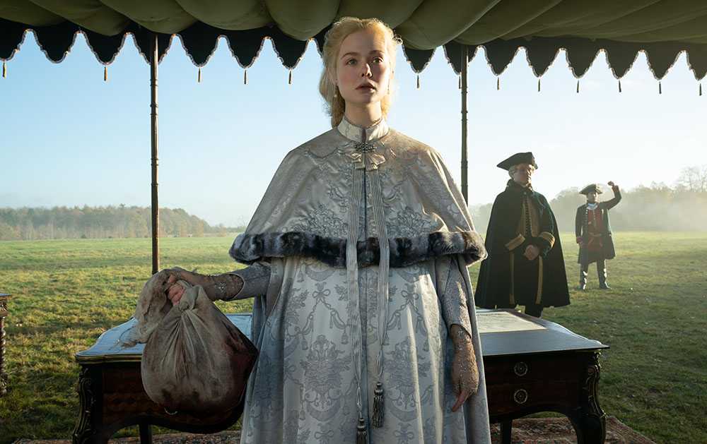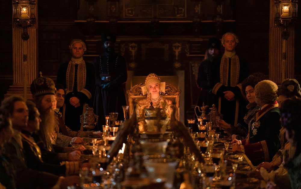 - Легко меняющаяся Эль Фэннинг показала одно из лучших выступлений в своей карьере: замечательно сыграла роль императрицы, которая превращается из невинной девушки в опытного манипулятора. Ее персонаж сияет собственным светом, когда решает реальные проблемы, такие как эпидемия оспы, или закладывает основы для союза России с другими странами.