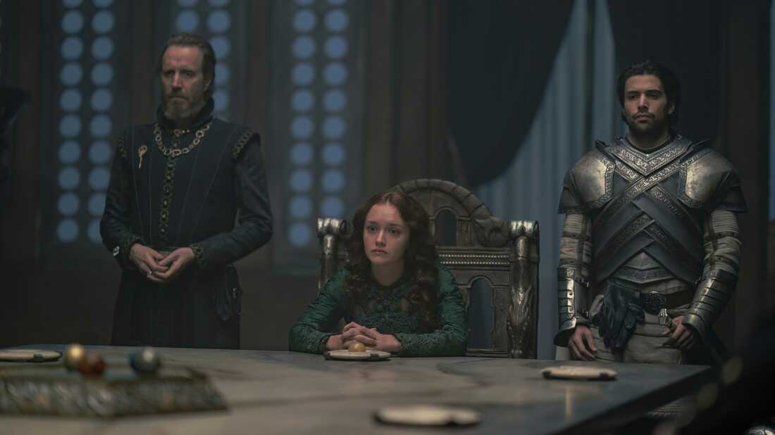 Король умирает, но Алисента приказывает пока не оповещать никого о его смерти. Она беседует с отцом и рассказывает ему последние слова Визериса, что тот на смертном одре желал видеть своего старшего сына Эйегона королем. На королевском совете Хайтауэр сообщил о смерти короля и о его якобы последнем желании. Члены совета давно к этому готовы. Однако лорд Бисбери выступает против и даже говорит об измене. Сир Кристон Коль тут же убивает его. На совете решают лишить жизни Рейениру и Деймона. Алисента против, но ничего не может предложить взамен. Операцию поручают лорду командующему королевской гвардии, но тот отказывается и подает в отставку.