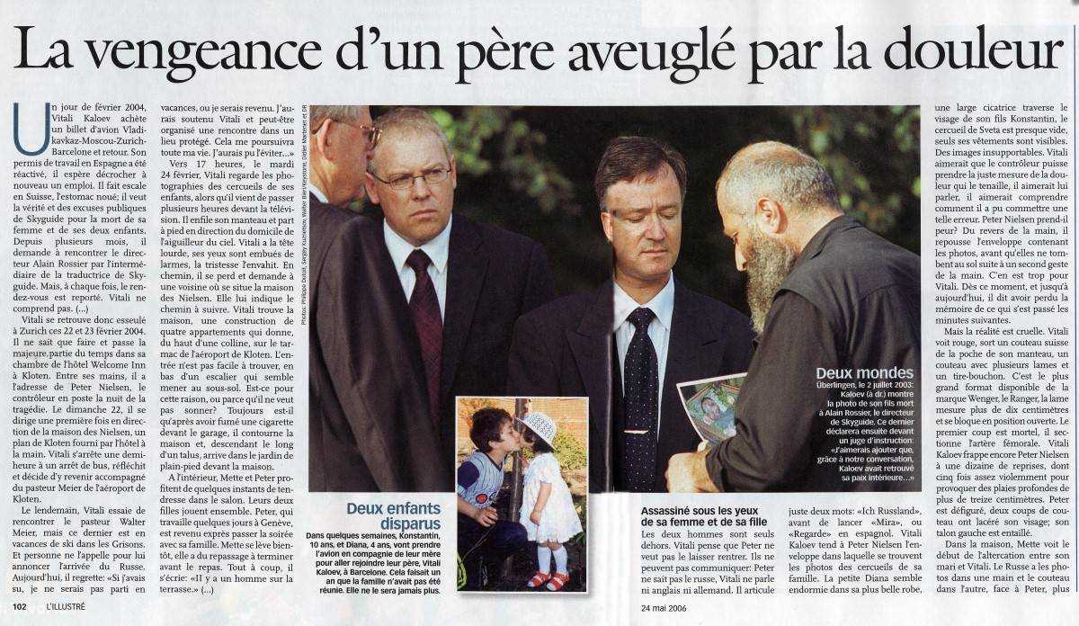 В 2003 году в немецком Иберлингене на месте падения самолетов проходила траурная церемония, посвященная годовщине трагедии. Во время нее Калоев, по словам сотрудников Skyguide, вел себя возбуждено, чем напугал руководителя диспетчерской фирмы. Говорили и о том, что Виталий ездил в офис компании, общался с ее сотрудниками, спрашивал их о виновности диспетчера и добивался встречи с ним.