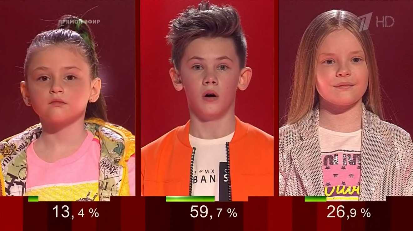 Суперфиналисты шоу «Голос. Дети» (7 сезон): Софья Туманова, Артём Фокин и Олеся Казаченко. Порядок выступлений: